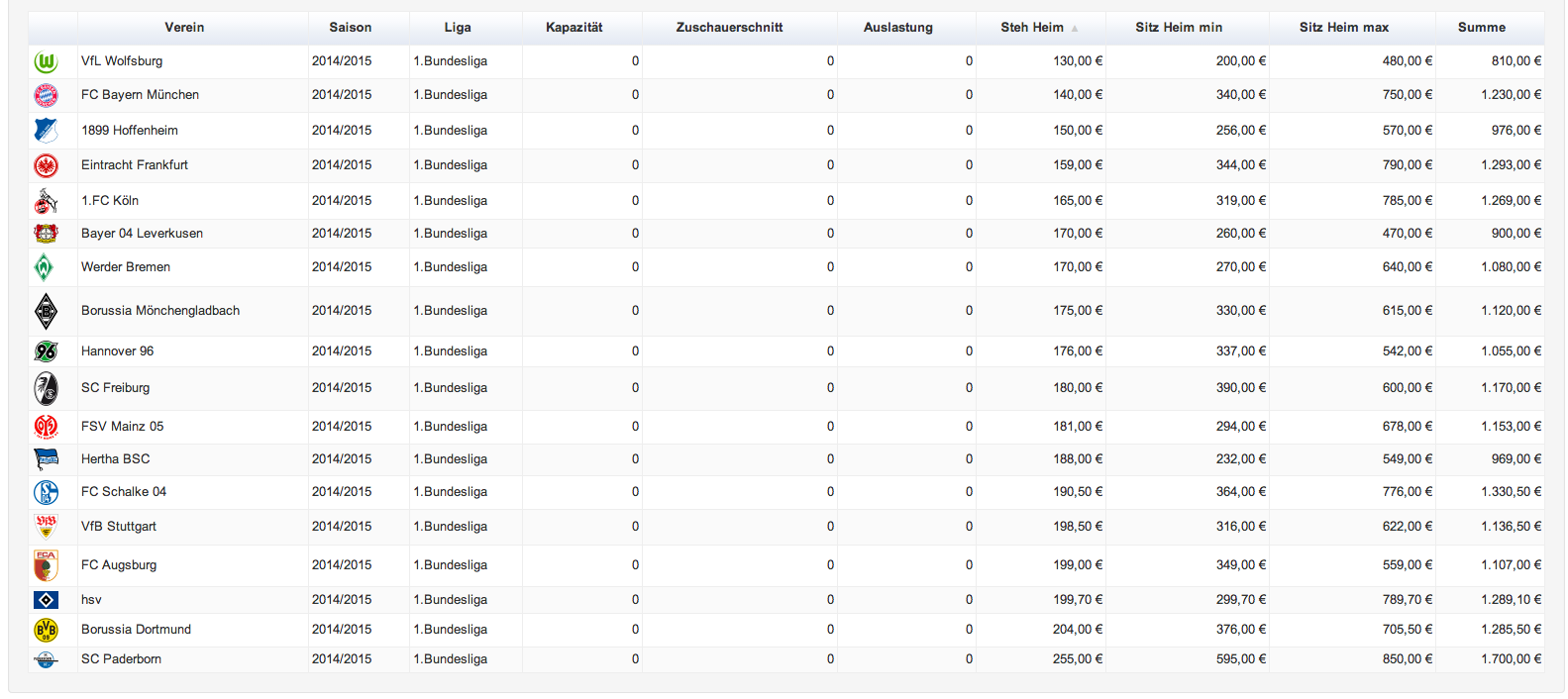 Eine tolle Visualisierung auf uebersteiger.de (Dem St. Paul Fan-Blog) macht deutlich, dass die TSG Hoffenheim auch in der kommenden Saison mit ihren Preisen für Dauerkarten am unteren Ende liegt (Was bei dem Thema ja auch zu wünschen ist :-)) Kauf zu unterbieten sind die Preise bei Steh- und Sitzplätzen beim VfL...