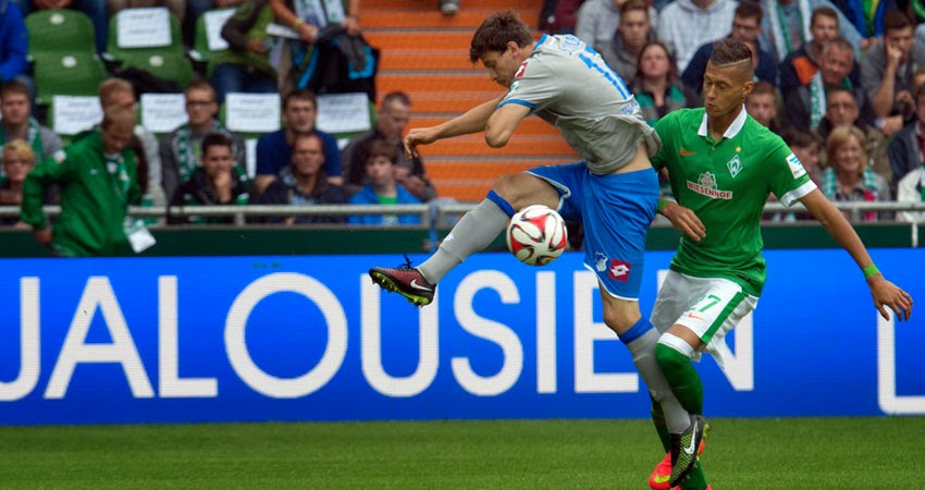 In Bremen drehte die TSG den Spieß um und attackierte in der ersten Halbzeit bei Bremer Ballbesitz derart konsequent und laufintensiv, dass die Gastgeber keinen Spielzug vernünftig planen und durchführen konnten. In der zweiten Halbzeit – sagte Trainer Dutt in der Pressekonferenz nach dem Spiel – stellte Bremen um und hatte dann einen Mann mehr im Mittelfeld. Davon wurden die Räume derart eng, dass die ohnehin schon bemerkbare Passungenauigkeit der TSG noch einmal zunahm, vor allem da, wo es wehtat.