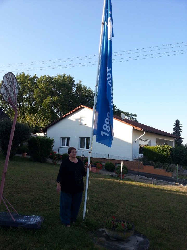 Seit einigen Wochen weht bei Frau Inge Neutzner im Meckesheim die Fahne der TSG. Der Fahnenmast schrie förmlich nach der passenden Beflaggung und die TSG 1899 Hoffenheim unterstützte die Aktion sehr gerne.